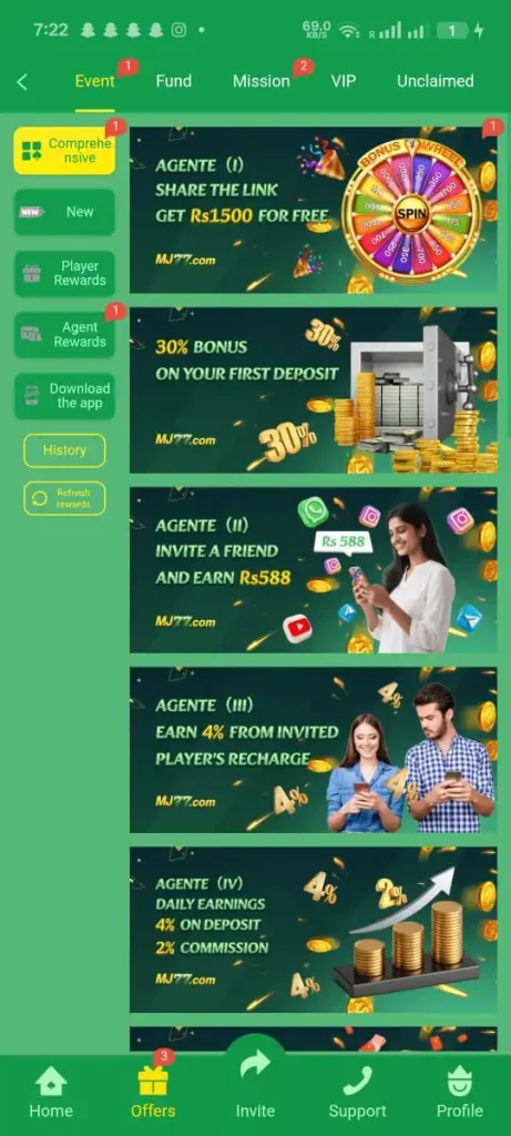 Another strong feature of MJ777 Game is the referral bonus system. Players can invite friends through a referral link and get commissions when their friends join and play. This allows users to build a steady side income without spending money. Additionally, the platform holds special events where players can predict winners of sports matches to earn real cash prizes. These different opportunities make MJ77 APK a new real money app that feels more flexible and useful compared to other gaming apps in the market.